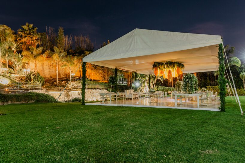 Toldos y carpas: En caso de que el pronóstico sea lluvioso, no se preocupen, los toldos y carpas bien decorados pueden ser una opción elegante y romántica para mantener a todos sus invitados secos y felices.